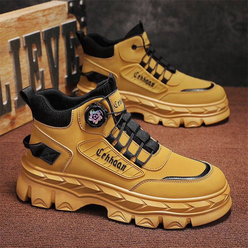 • 【高档轻奢】秋冬季新款男士潮鞋马丁靴 厚底工装百搭休闲鞋 黄色 42