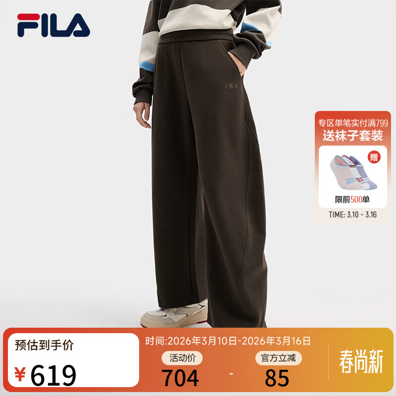 FILA 杨幂同款|斐乐官方女装针织长裤2026春季新款时尚宽松休闲弯刀裤 深土色-BN M 165/66A/M