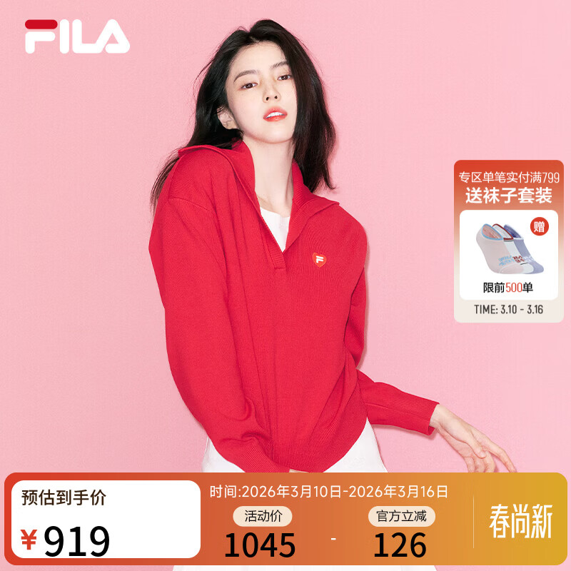 FILA 韩素希同款腮红毛衣|斐乐官方女装编织衫2026春季新年翻领毛衣 节奏红-PK S 160/80A/S