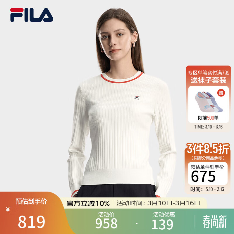 FILA 杨幂同款|斐乐官方女装编织衫2026春季新款时尚休闲修身套头毛衣 云菇白-WT L 170/88A/L