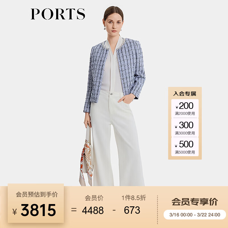 PORTS宝姿女装2026春季新款亮片装饰圆领花呢夹克ALU8J010XFO016 天空蓝混色 XS (2)