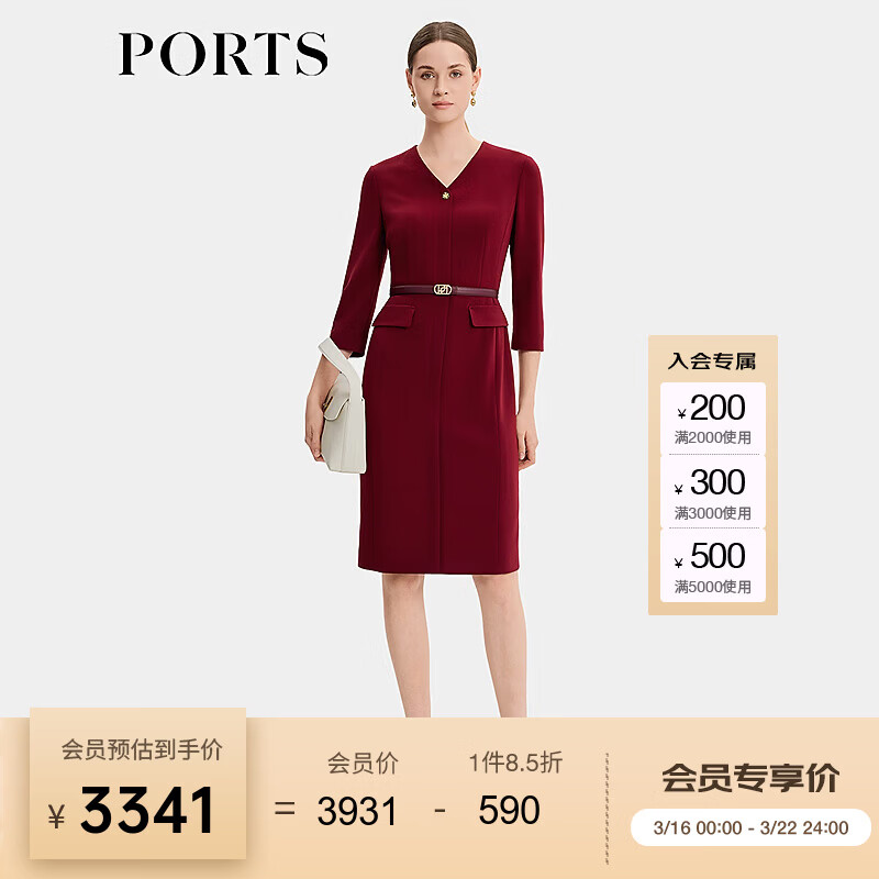 PORTS宝姿女装2026春季新款酒红色肌理质感连衣裙ALU8D003PWB006 酒红色 XS (2)