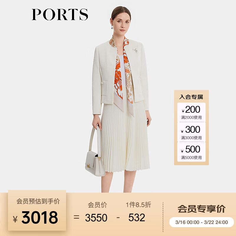 PORTS宝姿女装2026春季新款奶白精美珍珠装饰夹克ALU8J012XFQ071 奶白色 S (2)