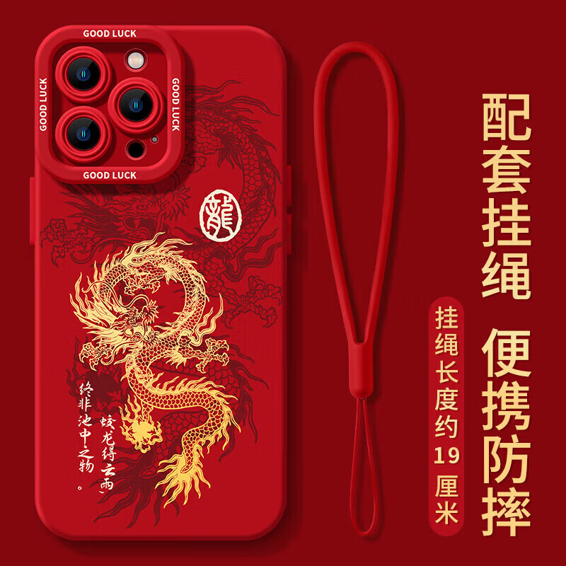 乐贝联 适用苹果XS手机壳硅胶小羊皮纹iPhoneX/Xsmax防摔镜头全包保护套XR国潮中国风创意男女红色新年款 苹果X/XS【红如意自在】带挂绳扣