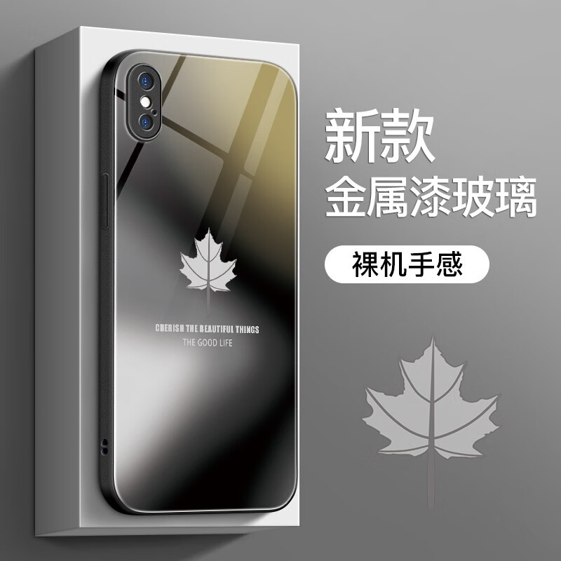 彩绘师 适用苹果xsmax手机壳17promax金属漆玻璃iPhoneX/XR硅胶全包防摔硬壳17Air网红简约枫叶男女新款 苹果xsmax【深邃黑】立体感玻璃