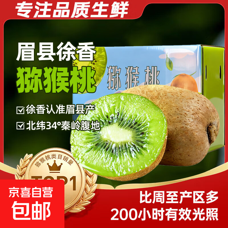 徐香猕猴桃周至绿心奇异果放软吃应季水果京东快递 10枚单果60-80克彩箱